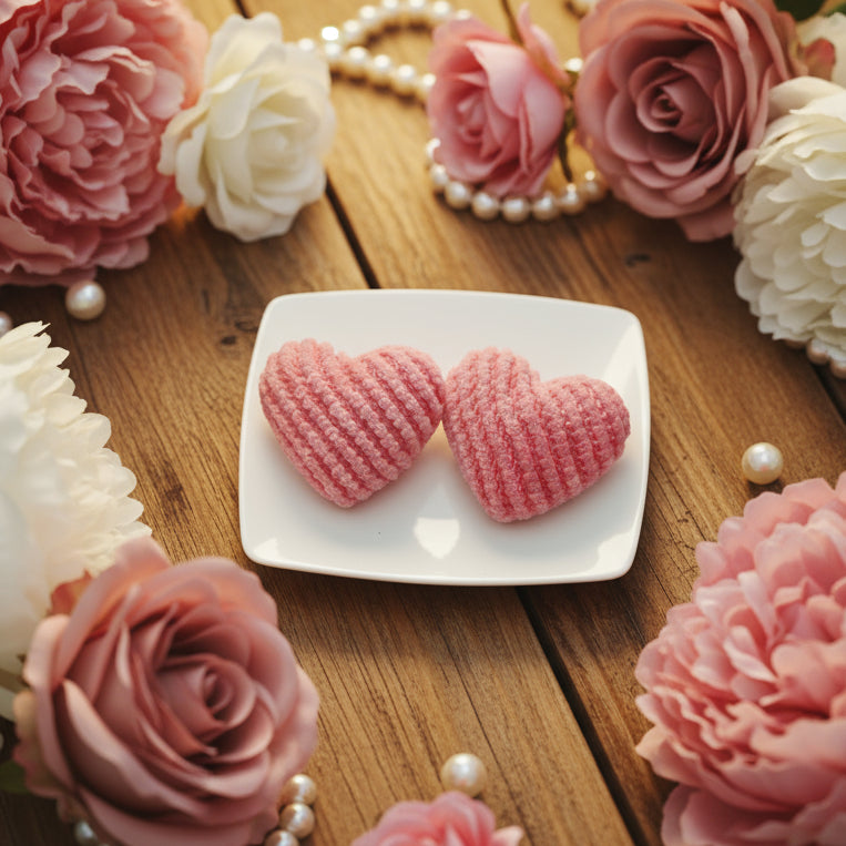 Pink Corduroy Heart Fabric Earrings (15mm)