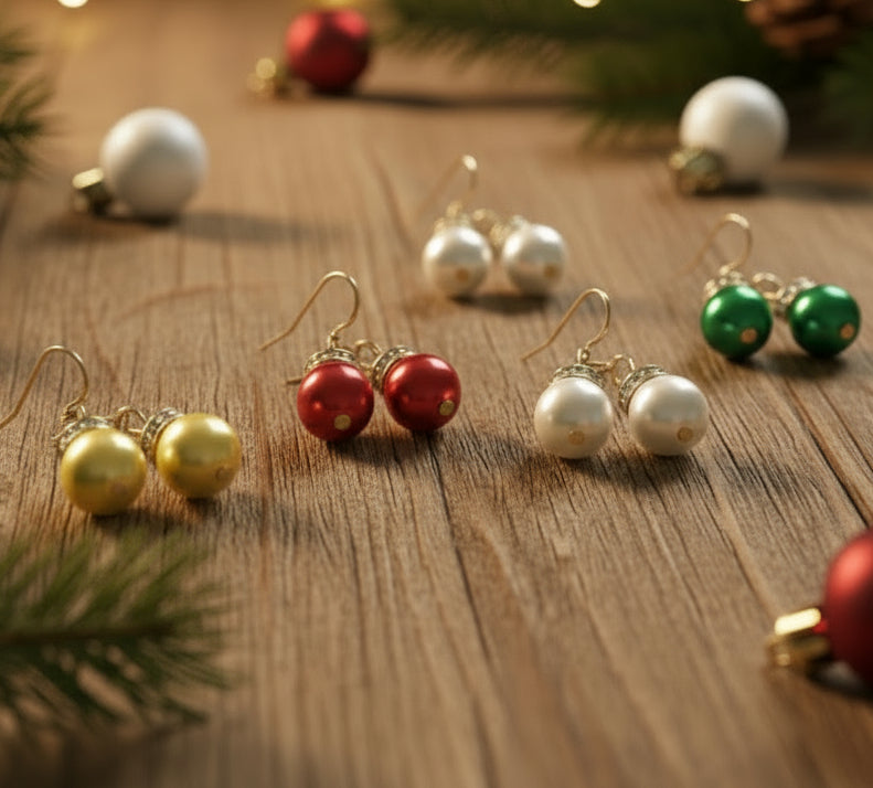 Ornament Dangle Earrings with Rhinestones, About 1.14" long. Beads: about 10mm in diameter.